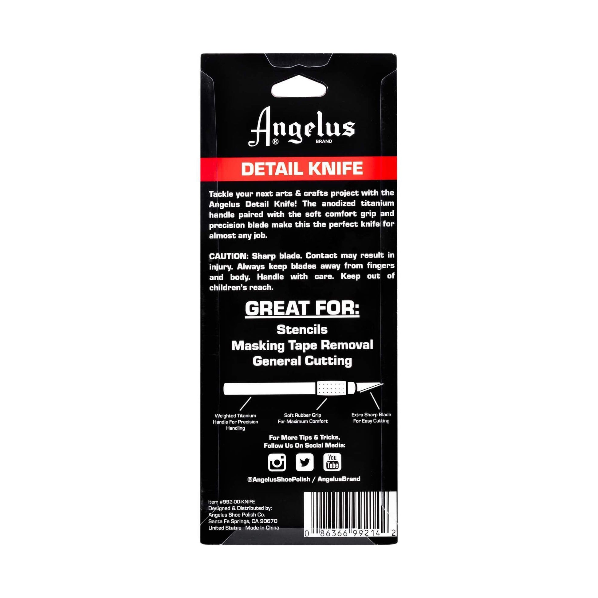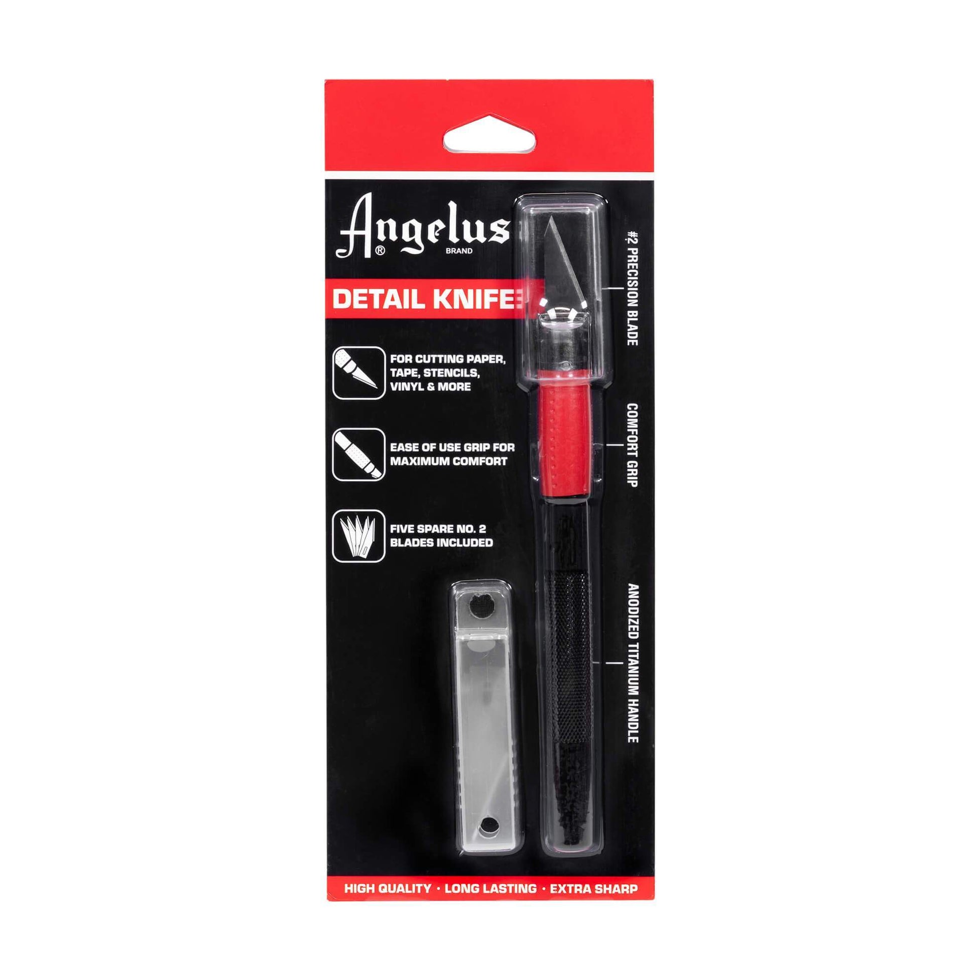 Le couteau de Détail Angelus est doté d'un manche en titane anodisé de haute qualité, d'une poignée souple et confortable, et de 6 lames de précision n°2. Un choix parfait pour un usage quotidien, le Couteau de Détail Angelus présente des matériaux de qualité qui peuvent résister à presque n'importe quel projet.